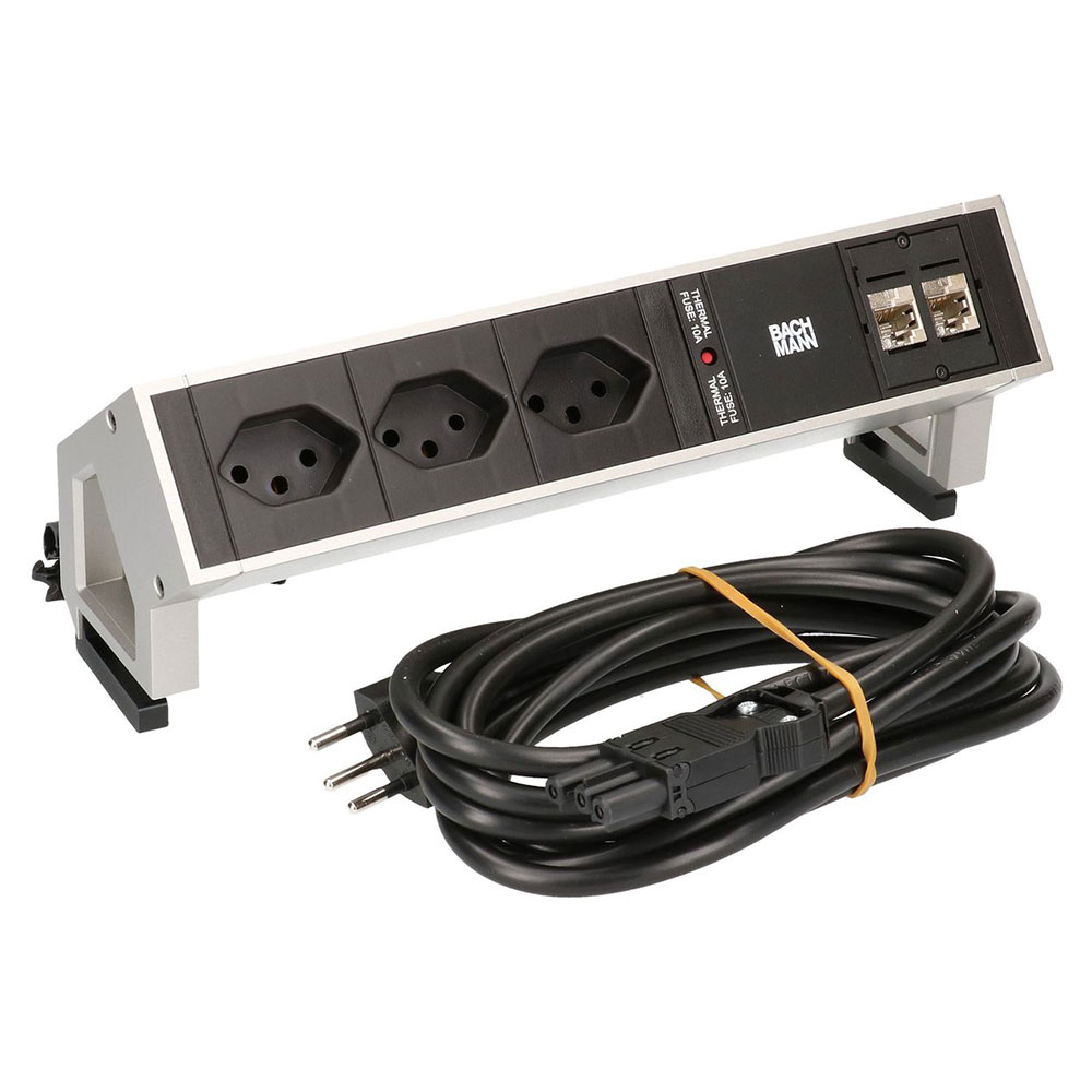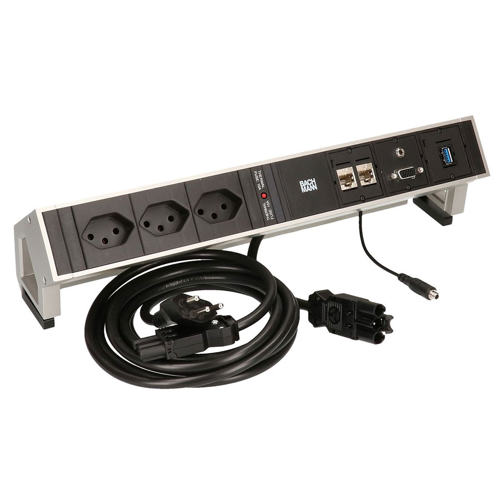 • Steckdosenleiste mit Tischhalterung